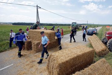 Tour de France a fost oprit de un protest al fermierilor francezi cu baloţi de paie