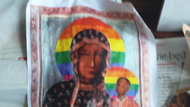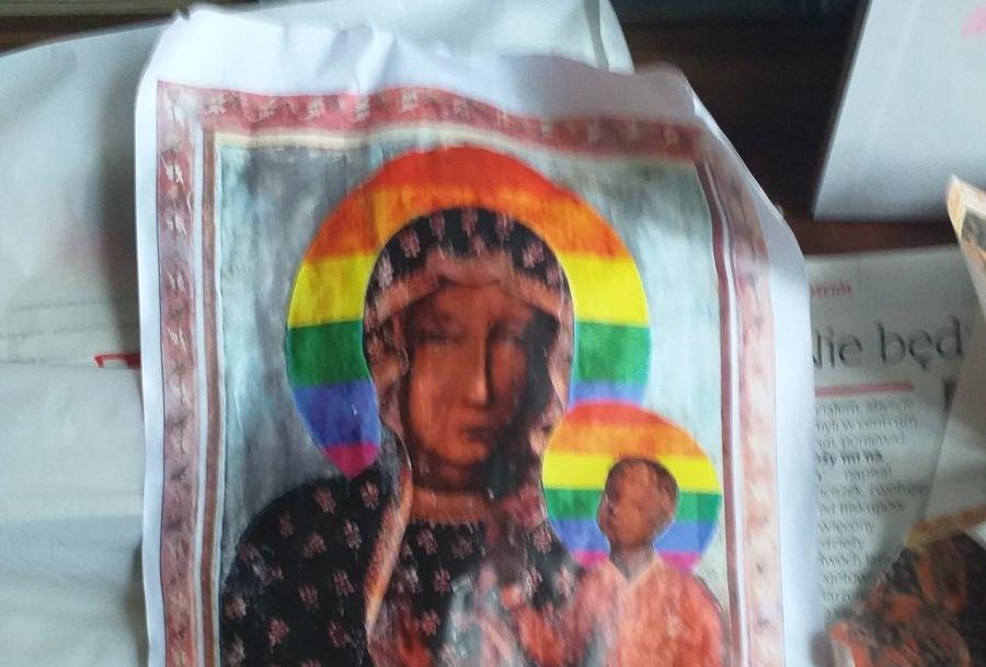 Scandalul a început la o săptămână după Paște, în seara zilei de 26 aprilie. În jurul bisericii Sf. Dominika din orașul polonez Płock, pe coșuri de gunoi sau pe toalete ecologice. au fost lipite mai multe afișe care o înfățișau pe Fecioara Maria și pe Pruncul Iisus cu steagul-curcubeu al comunității LGBT în loc de aura aurie.