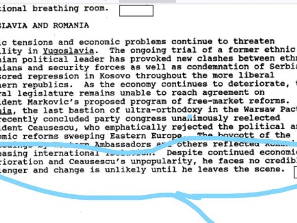 Spionii CIA din Balcani nu au prevăzut Revoluția din decembrie 1989, relevă un document desecretizat și publicat pe site-ul Black...