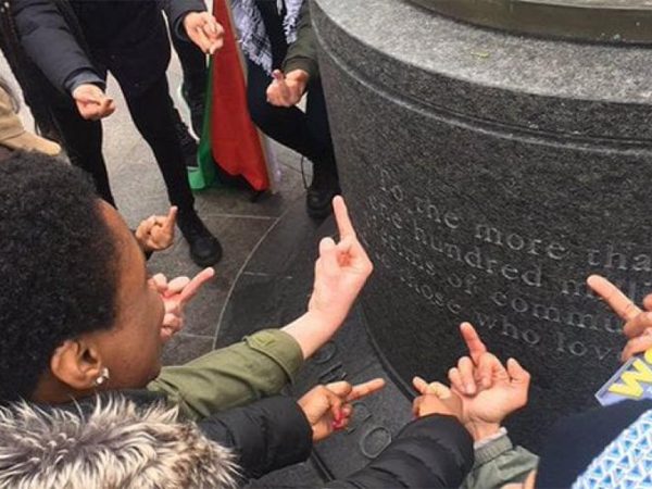 “Doar viaţa oamenilor de culoare contează” au scris protestatarii americani, membrii ai organizaţiei ANTIFA, pe Memorialul Victimelor Comunismului. Autori necunoscuţi...