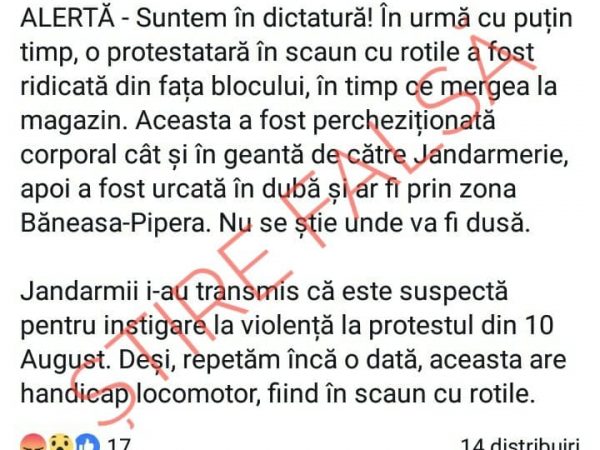 Pe o pagină de socializare intitulată „Luptăm pentru România” a fost publicată o informație falsă, potrivit căreia o persoană cu...