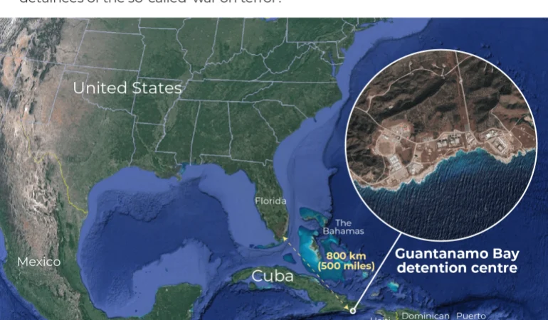 Baza navală americană din Guantanamo Bay, Cuba, găzduiește deja o unitate pentru migranți – separată de închisoarea de înaltă securitate din SUA pentru suspecți de terorism străin – care a fost folosită ocazional de zeci de ani, inclusiv pentru a ține departe haitienii și cubanezii.
